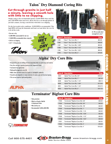 5188 TalonTM Dry Core Bit, 1-1/2˝