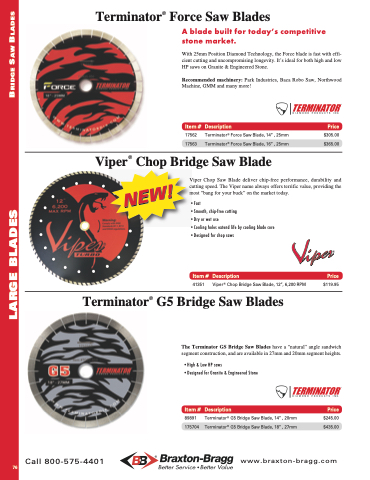 89891 Terminator® G5 Bridge Saw Blade, 14” , 20mm 175704 Terminator® G5 Bridge Saw Blade, 18” , 27mm