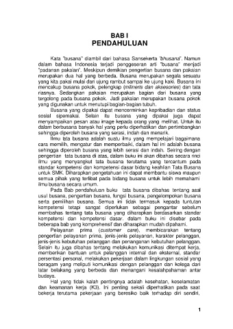 Pada Bab pendahuluan buku tata busana dibahas tentang asal