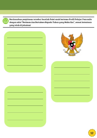 Berdasarkan penjelasan tersebut buatlah Puisi anak bertema Profil Pelajar Pancasila dengan nilai “Beriman dan Bertakwa Kepada Tuhan yang Maha Esa”, sesuai ketentuan yang telah di jelaskan! 12