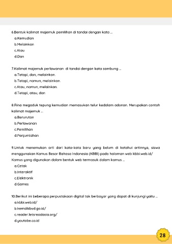 6.Bentuk kalimat majemuk pemilihan di tandai dengan kata …
