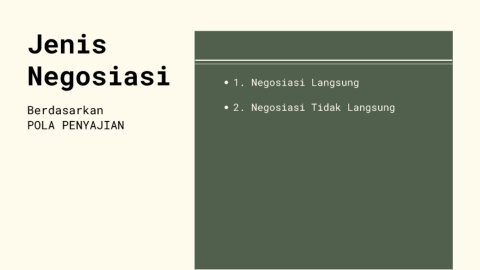 Jenis Negosiasi 1. Negosiasi Langsung Berdasarkan 2. Negosiasi Tidak Langsung POLA PENYAJIAN