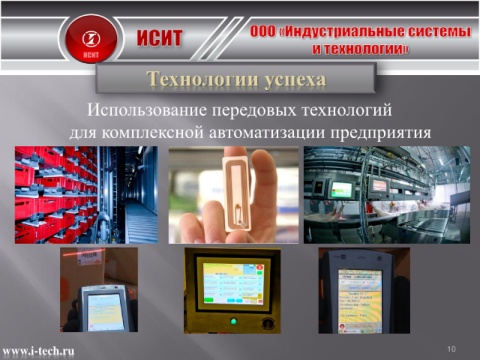 Технологии успеха Использование передовых технологий для комплексной автоматизации предприятия www.i-tech.ru 10