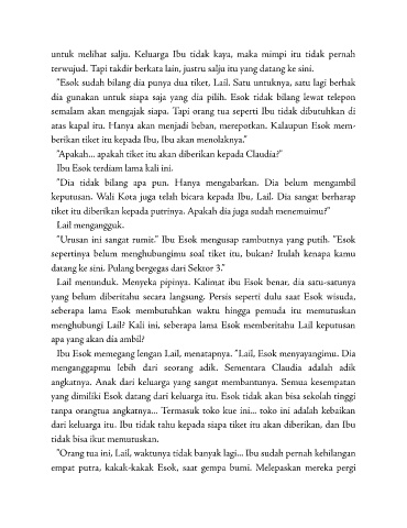 Ibu Esok memegang lengan Lail, menatapnya. ” Lail, Esok me nyayangimu. Dia