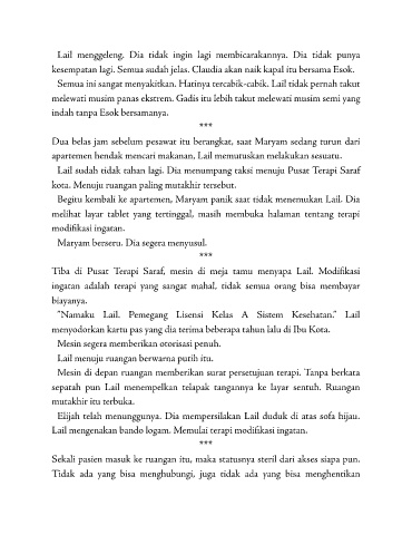 Lail sudah tidak tahan lagi. Dia menumpang taksi menuju Pu sat Terapi Saraf