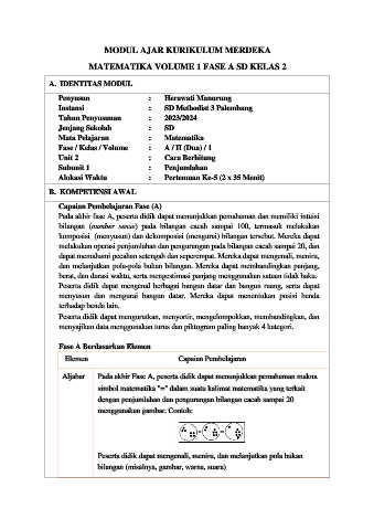 Aljabar Pada akhir Fase A, peserta didik dapat menunjukkan pemahaman makna