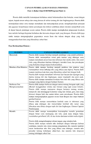 CAPAIAN PEMBELAJARAN BAHASA INDONESIA