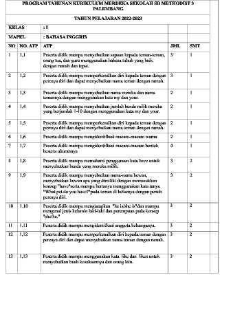 PROGRAM TAHUNAN KURIKULUM MERDEKA SEKOLAH SD METHODIST 3