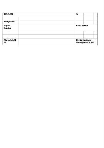 JUMLAH 36 Mengetahui Kepala Guru Kelas I Sekolah Maria,S.S,.M. Devita Gustirani Pd Simanjuntak, S. Pd