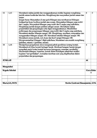15 1,15 Memahami makna jumlah dan menggunakannya melalui kegiatan menghitung 4 2