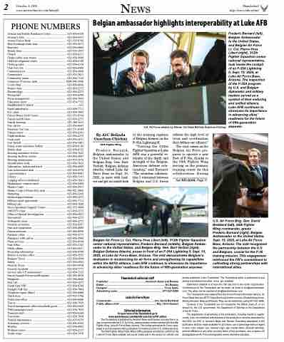 “Visiting the 312th Fighter Squadron at Luke AFB was a powerful re- minder of the depth and strength of the Belgian- American defense rela- tionship,” said Bernard. “The seamless collabora- tion I witnessed between Belgian and U.S. forces
