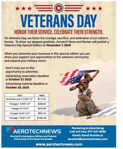 On Veterans Day, we honor the courage, sacrifice, and dedication of our nation’s heroes. To show our deepest gratitude, Aerotech News and Review will publish a Veterans Day Special Edition on November 7, 2025