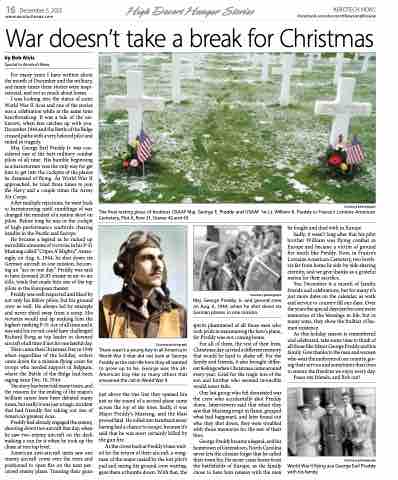As this holiday season is remembered and celebrated, take some time to think of all those like Major George Preddy and his family. Give thanks to the men and women who wear the uniforms of our country, giv- ing their service and sometimes their lives to ensure the freedom we enjoy every day.
