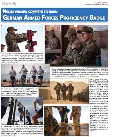 U.S. Airmen begin the 1,000-meter run component of the German Armed Forces Proficiency Badge (GAFPB) competition at Nellis Air Force Base, Nev., Nov. 11, 2025. The run measures aerobic capacity and overall physical readiness and is one of the components scored to be awarded the GAFPB.