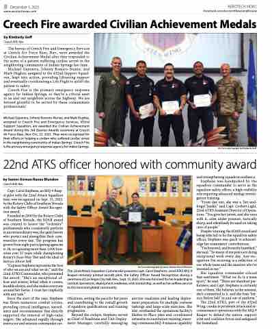 Capt. Carol Stephens, an MQ-9 Reap- er pilot with the 22nd Attack Squadron here, was recognized on Sept. 15, 2025, by the Rotary Clubs of Southern Nevada with the Safety Officer Award Recogni- tion award.