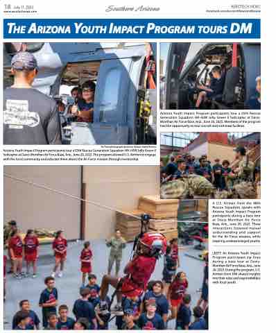 Arizona Youth Impact Program participants tour a 55th Rescue Generation Squadron HH-60W Jolly Green II helicopter at Davis-Monthan Air Force Base, Ariz., June 20, 2025. The program allowed U.S. Airmen to engage with the local community and educate them about the Air Force mission through mentorship.