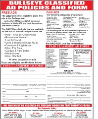 One word, phone number, price per space. PAID CLASSIFIED AD FORM