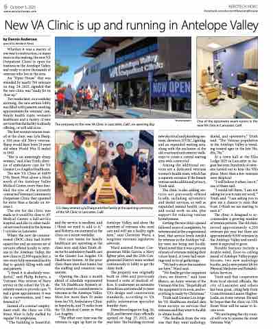 Opening the clinic a month ahead of schedule represented the VA Healthcare System’s ef- forts to meet its commitments to veterans in the Antelope Valley. Most live more than 50 miles from the VA Ambulatory Clinic in Sepulveda, and 75 miles from the VA Medical Center in West Los Angeles.