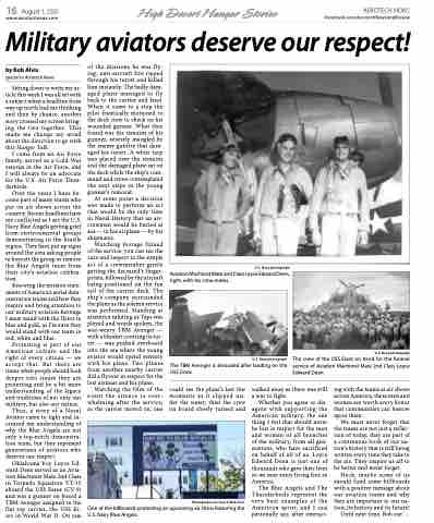 Thus, a story of a Naval Aviator came to light and in- creased my understanding of why the Blue Angels are not only a top-notch demonstra- tion team, but they represent generations of aviators who deserve our respect.