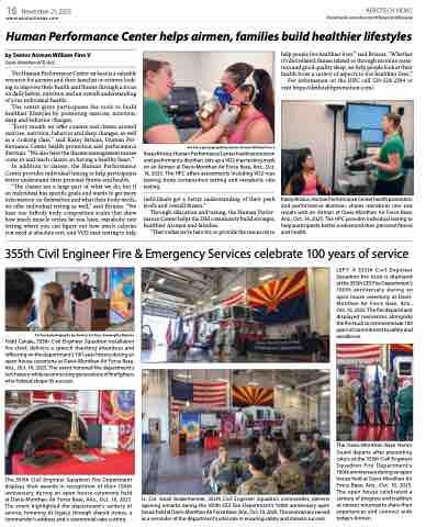 The Human Performance Center on base is a valuable resource for airmen and their families or retirees look- ing to improve their health and fitness through a focus on daily habits, nutrition and an overall understanding of your individual health.