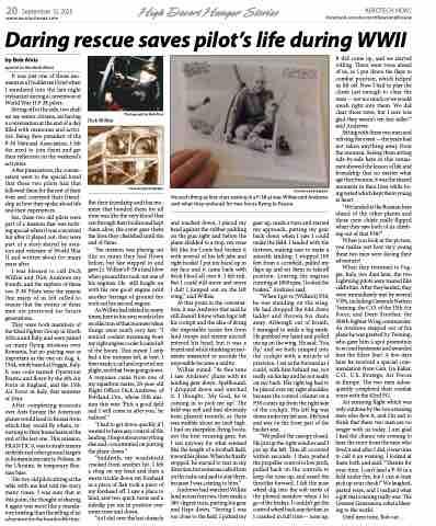 At this point in the conversa- tion, it was Andrews that said he still doesn’t know when logic left his cockpit and the idea of doing the impossible under fire from land troops and enemy aircraft entered his head, but it was a friend and while thinking in mo- ments measured in seconds the impossible became a reality.