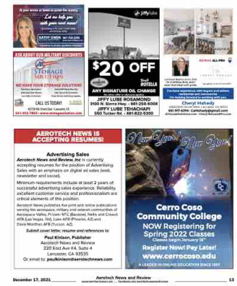 Aerotech News publishes five print and online publications serving the aerospace, military and veteran communities of Aerospace Valley, Ft Irwin NTC (Barstow), Nellis and Creech AFB (Las Vegas, NV), Luke AFB (Phoenix, AZ) and Davis-Monthan AFB (Tucson, AZ).