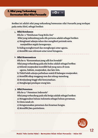 Modul Teks Cerita Fabel - Bermuatan Nilai-Nilai Pancasila - Kelas VII