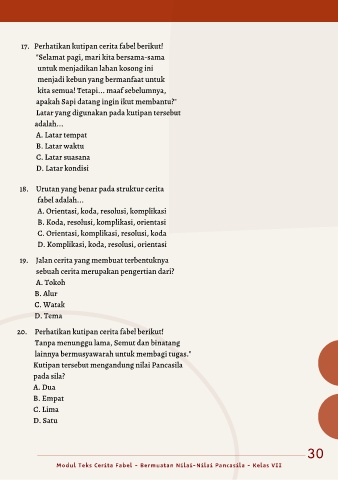 Modul Teks Cerita Fabel - Bermuatan Nilai-Nilai Pancasila - Kelas VII