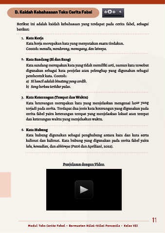 Modul Teks Cerita Fabel - Bermuatan Nilai-Nilai Pancasila - Kelas VII