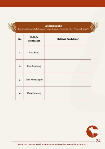 Modul Teks Cerita Fabel - Bermuatan Nilai-Nilai Pancasila - Kelas VII