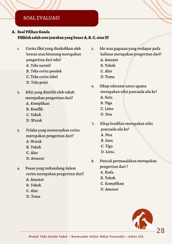 Modul Teks Cerita Fabel - Bermuatan Nilai-Nilai Pancasila - Kelas VII