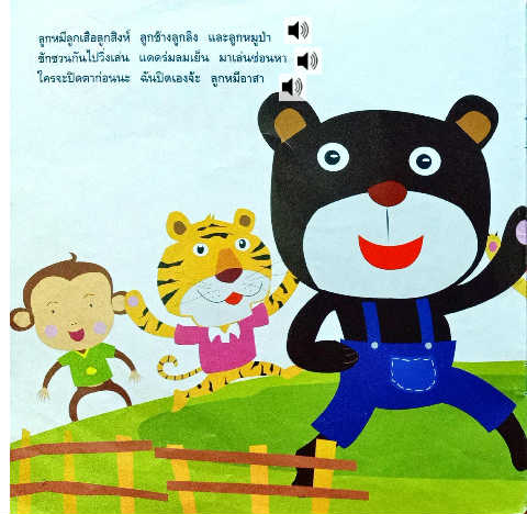 anußqmaaqnaw Little Bear, Little Tiger, Little Lion, Little Elephant, Little Monkey, and Tiny Boar play together on a breezy, sunny day. They play hide and seek. Who will seek first? "Me," says Little Bear.