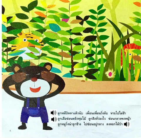 Little  Bear  closes  his eyes and  counts. The  others find places to  hide.