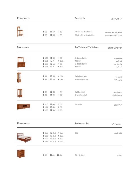 L 105 D 213 H 123 Bedroom Set سرویس خواب