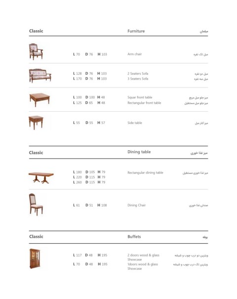L 180 D 105 H 79 Dining table میز غذا خوری
