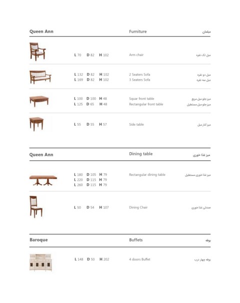 L 70 D 82 H 102 Arm chair مبل تک نفره