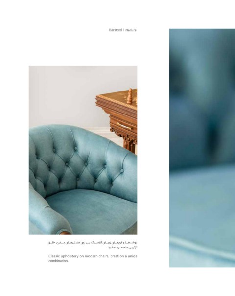 Barstool Namira دوختهــا و فرمهــای زیبــای کلاســیک بــر روی صندلیهــای مــدرن ،خلــق ترکیبــی منحصــر بــهفــرد Classic upholstery on modern chairs, creation a uniqe combination.