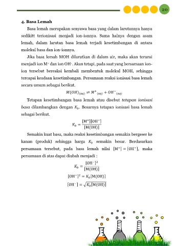 lemah, dalam larutan basa lemah terjadi kesetimbangan di antara