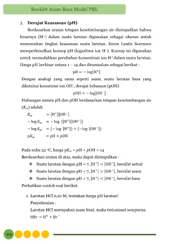 Pada suhu 25 C, harga pKw = pH + pOH = 14