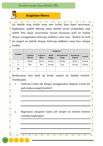 uji sampel air limbah dengan beberapa indikator asam basa sebagai
