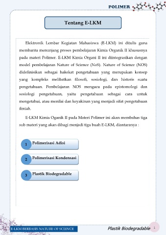 E-LKM Kimia Oganik II pada Materi Polimer ini akan membahas tiga