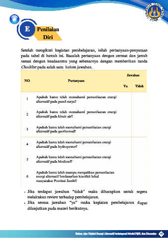 Jika semua jawaban “ya” maka kegiatan pembelajaran dapat
