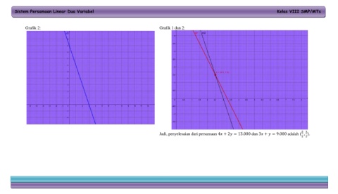 Sistem Persamaan Linear Dua Variabel Kelas VIII SMP/MTs Grafik 2: Grafik 1 dan 2: Jadi, penyelesaian dari persamaan dan adalah .
