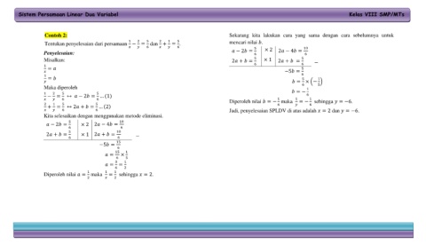 Sistem Persamaan Linear Dua Variabel Kelas VIII SMP/MTs