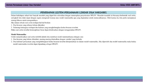 Sistem Persamaan Linear Dua Variabel Kelas VIII SMP/MTs