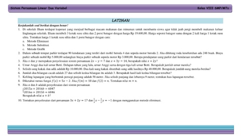 Sistem Persamaan Linear Dua Variabel Kelas VIII SMP/MTs