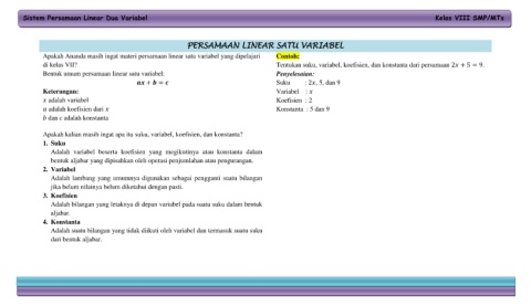 Sistem Persamaan Linear Dua Variabel Kelas VIII SMP/MTs