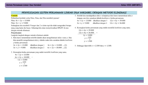 Sistem Persamaan Linear Dua Variabel Kelas VIII SMP/MTs