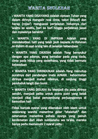 • WANITA YANG DIRINDUKAN adalah Yang menutup