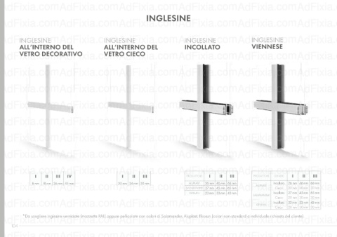 *Da scegliere inglesine verniciate (mazzetta RAL) oppure pellicolate con colori di Salamander, Aluplast, Ekosun (colori non-standard a individuale richiesta del cliente).